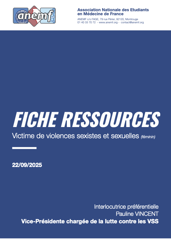 Après deux années passées à collecter des données et à rencontrer les instances et structures impliquées dans la lutte contre les VSS en médecine, l’ANEMF  vous présente, en collaboration avec la Conférence Permanente des chargé·e·s de missions Égalité Diversité, le guide de lutte contre les violences sexistes et sexuelles.
